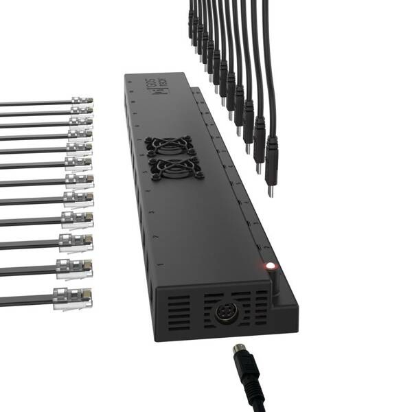 The GDS 12-Port 300W USB-C + RJ45 Power Delivery Wall Charger (RAM-GDS-CHARGE-USBC-RJ45-12) will charge up to twelve devices at once. This power strip reduces outlet clutter with its single connection and twelve USB Type-C ports. This charger block also features twelve ethernet connection ports (RJ45) that enable fleet-based updates to be securely pushed during downtime. Efficiently charge devices while not in use or overnight with up to 30% faster charging with GDS Technology. For fleet-based solutions, pair this dock with the GDS Slide Dock (RAM-GDS-DOCK-G7M-8-NGU) for an efficient, scalable charging station. Always Protected. Always Connected. BrandSymbolRAM-GDS-CHARGE-USBC-RJ45-12Producer code793442019821SeriesHardware Included(1) 12-Port Charger|(1) Power BrickProduct DimensionsOverall Length: 18.27"|Overall Width: 3.27"|Overall Height: 1.62"Packaging TypeBoxInput Voltage100-240VAC, 50-60HzOutput VoltageOverall: 12VDC|Per Port: 5-12VDCOutput CurrentOverall: 25A max|Per Port: 2A maxPorts(12) USB-C 3.0|(12) RJ45 EthernetRegulatoryFCC, CE, UKCA, IC, RoHS, WeeeProduct Weight3044 g - Recommended products