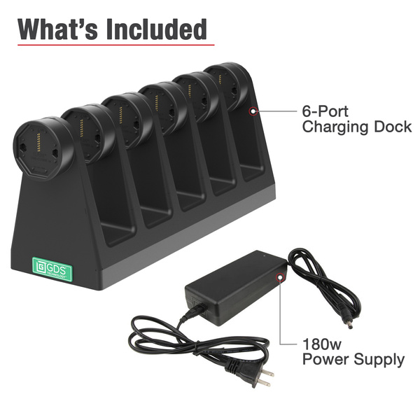 The GDS Uni-Conn 6-Port Power + RJ45 Dock for Tablets with IntelliSkin (RAM-GDS-DOCK-6G17P-RJ45) is a multi-device, enterprise charging station engineered for tablets using IntelliSkin or Tab-Conn with rear pogo pad connectors. This rugged docking solution eliminates the need for multiple charging cables by delivering power through a single cord and providing six individual charging bays to minimize workspace clutter. A built-in RJ45 Ethernet port enables a secure wired network connectionideal for pushing software updates or syncing data during device downtime. The magnetic docking system allows for quick and secure device placement, enabling effortless dock and undock functionality. Ideal for shift-based workflows, this powered dock ensures each tablet stays charged and readywhether used as a centralized charging hub or return station. Always Protected. Always Connected. One Dock to Connect Them All. BrandSymbolRAM-GDS-DOCK-6G17P-RJ45Producer code793442029356SeriesNewYesProduct DimensionsOverall Length: 19.17"|Overall Width: 5.52"|Overall Height: 8.19"MaterialsHigh strength compositePackaging TypeBoxOutput VoltagePD 2.0 (Per Port):|5V @ 3A, 9V @ 2A, 9V @ 2.22A, 12V @ 2A|PD 3.0 (Per Port): 3.3-11.7VDCRegulatoryFCC, CE, UKCA, RoHS, WEEECertificationsUL 62368-1 - Recommended products