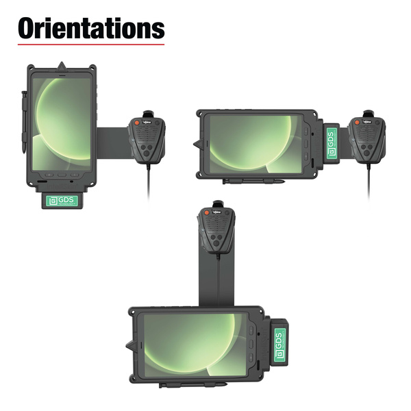 - Bundle includes GDS® Uni-Conn™ dock, Uni-Conn™ adapter, IntelliSkin® for the Samsung Tab Active5, a microphone bracket, hardwire charger, and a double ball mount with backing plate
