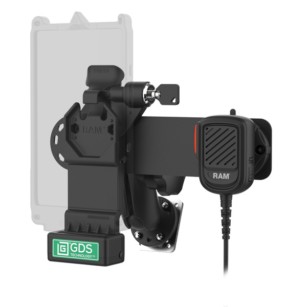 The GDS Uni-Conn Locking PTT Remote Speaker Mic Bundle for ESChat & Zello (RAM-GDS-U1RL-RSM-A04) delivers everything you need to enable reliable Push-to-Talk over Cellular (PoC) in your fleet. This bundle does not include an IntelliSkin, ideal for organizations already using IntelliSkin device sleeves or deploying a mixed-device fleet within the GDS Ecosystem. It includes the universal Uni-Conn dock, drill-down base with backing plate, microphone bracket, microphone clip, and a rugged USB-C Remote Speaker Microphone (RSM). Compatible with ESChat and Zello, the RSM ensures clear, instant communication for fleets, first responders, logistics teams, and mobile workforces. And with locking knobs for theft deterrence, your hardware stays protected in the field. BrandSymbolRAM-GDS-U1RL-RSM-A04Producer code793442031816SeriesHardware Included(1) Remote Speaker Mic (1) Uni-Conn™ Dock (Locking) (1) Mic Bracket (1) Mic Clip Receiver (1) Double Ball Mount with Backing Plate (1) Hardwire Charger (2) Cable Clamp KitsSocket To Socket Length4.66"Hole Pattern4-Hole AMPS: 1.181" x 1.496"|3-Hole 120-Degree: 1.812" DiameterBall SizeC Size (1.5")MaterialsSteel|Marine-grade aluminum|High strength compositePackaging TypeBoxPower SpecificationsRemote Speaker Mic: Operating Voltage: 1.2VDC - 5VDC Current Consumption 100UA - 500UA Output Impedance @ 1KHZ Max 2.2K Ohms Signal to Noise Ratio: 1KHZ 60+ DB Max Input SPL 110DB Moisture Ingress Rating IP67Output Voltage5V - 12V @ 3APower Output15WInput ConnectorUSB Type-C|USB Type-C for 1 PeripheralInput Cable Length215mmOutput Cable Length215mmPeripheral Output500mAhComponent partsRAM-101-MIC2URAM-201-SURAM-202-225-2URAM-238URAM-GDS-CAB-CLAMP1URAM-GDS-DOCKLR-U1CP-CURAM-RSM-A04RAM-VC-MC - Recommended products
