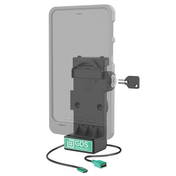 - Spring-loaded, locking dock featuring GDS® Technology™ uses an integrated pogo pin connector to provide high-speed charging and connection to one additional USB peripheral