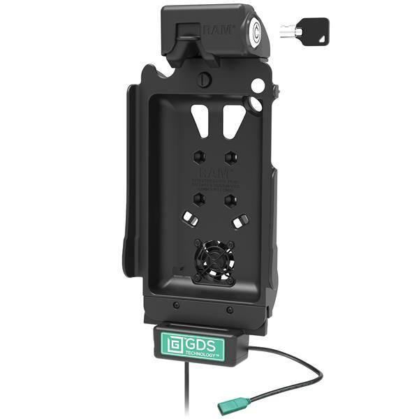 The GDS Cool-Dock is the upgraded version of the GDS Tough-Dock including a built-in 12-VDC Axial cooling fan with a 2.2 meter long hardwire power cord and a keyed locking system. The GDS Cool-Dock is the turnkey vehicle dock in the GDS Tech line of vehicle docks designed to support the Samsung Galaxy Tab A 8.4 (2020) in a Next Gen IntelliSkin protective sleeve for your fleet. Using a USB Type-C connector, the GDS Cool-Dock supports data sync and fast charging capabilities for the Samsung Galaxy Tab A 8.4 (2020). The GDS Cool-Dock contains a 4-hole AMPS pattern; compatible with RAM ball and socket mounting systems. The GDS Cool-Dock is backed by a 3-year warranty. Always Protected. Always Connected. BrandSymbolRAM-GDS-DOCKLF-SAM67CUProducer code793442011726Product Weight612 gHardware Included(4) #8-32 x 5/8" Machine Screws|(4) #8-32 Nylock Nuts|(2) Keys(4) #8-32 x 5/8" Machine Screws|(4) #8-32 Nylock Nuts|(2) Keys|(1) USB Type-C to Type-A CableHole Pattern4-Hole AMPS: 1.181" x 1.496"AMPS 4-HoleMaterialsHigh strength compositePackaging TypePoly BagOutput Voltage5V - 20V @ 3APower Output60WInput ConnectorUSB Type-CInput Cable Length.21 Meter380mmTransfer Speed5GbpsDevice or Accessory TypeTabletComponent partsRAM-GDS-DOCKL-SAM67CURAM-GDS-FAN1U - CompatibilitySamsung Galaxy Tab A 8.4 (SM-T307) with IntelliSkin® Next Gen