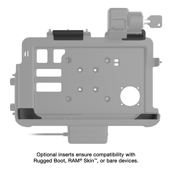 The Locking RAM Thin-Dock for Zebra ET401 & ET4x 10" (RAM-HOL-ZE47PLU) delivers a low-profile, 2.45"-deep design reinforced with a durable metal plate, ideal for applications where space is limited. This vehicle dock is purpose-built for the Zebra ET401, ET40, and ET45 10" enterprise tablets, connecting directly to the tablet's integrated pogo pins to ensure a reliable, long-lasting mounting and charging solution. Engineered for efficiency, the Thin-Dock keeps your tablet powered through pogo pin contacts while docked, with power supplied via the docks USB Type-C connector. The design also maintains access to the tablets side scanning function, making it a strong fit for field service, warehousing, retail, transportation, and other data-capture environments. Because of its compact footprint, this dock does not support add-ons like the Zebra Expansion Back or PowerPack Battery. For mounting flexibility, the dock is compatible with both RAM C and D size 4-hole AMPS pattern bases, ideal for pairing with a double socket arm to complete your vehicle or workstation setup. This dock also features integrated attachment points for the RAM Vent-Temp, a temperature control accessory, and the RAM NFC Extender. Enhance your workflow further using the integrated 2-hole mounting plate, compatible with RAM 2-hole diamond bases, allowing you to mount an additional device such as a phone, handheld scanner, or other accessories. BrandSymbolRAM-HOL-ZE47PLUProducer code793442032509SeriesNewYesHardware Included(2) Keys (4) #8-32 x 5/8" Machine Screws (4) #8-32 Nylock Nuts (4) #10-24 x 5/8" Machine Screws (4) #10-24 Nylock Nuts (1) Cable ClampHole Pattern75 x 75mm VESA|4-Hole AMPS: 1.181" x 1.496"MaterialsHigh strength compositePackaging TypePoly BagOutput Voltage12V @ 2APower Output24WInput Connector5.5mm DC ConnectorInput Cable Length1 MeterCertificationsRoHS|WEEE|CE|FCC|IC|RCM - CompatibilityZebra ET401 10"Zebra ET40 10"Zebra ET45 10"