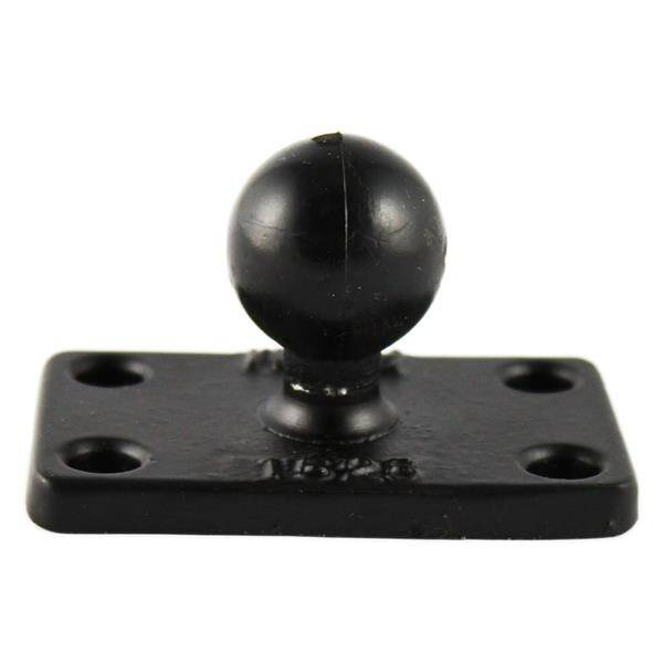 The RAM-B-202U-1525 contains a 1" diameter rubber ball connected to a rectangular plate with a 4-hole pattern of 1" x 2" center to center. BrandSymbolRAM-B-202U-1525Producer code793442909566Product Weight73 g68 gHole Pattern1" x 2"Weight CapacityStandard Use: 907.18 gramss|Heavy-Duty Use: 453.59 gramsMaterialsMarine-grade aluminumPackaging TypePoly BagMounting TypeDrill DownBall & Socket SizeB Size 1" (Holds 907.18 gramss)Ball SizeB Size (1") - Recommended products