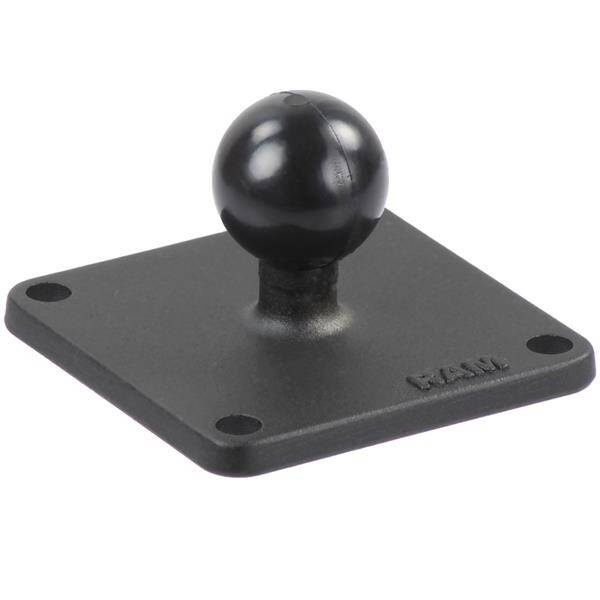 The RAM-B-202U-2525 contains a 1" diameter rubber ball connected to a square plate with a 4-hole pattern of 2" x 2" center to center. BrandSymbolRAM-B-202U-2525Producer code793442951459Product Weight82 gHole Pattern2" x 2"Weight CapacityStandard Use: 907.18 gramss|Heavy-Duty Use: 453.59 gramsMaterialsMarine-grade aluminumPackaging TypePoly BagMounting TypeDrill DownBall & Socket SizeB Size 1" (Holds 907.18 gramss)Ball SizeB Size (1") - Recommended products
