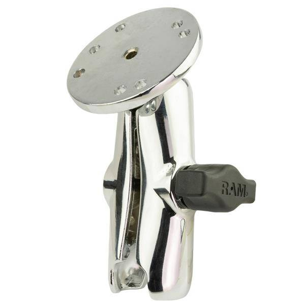 The RAM-B-103CHU consists of a CHROME 2.5" round base and double socket arm that will accept 1" ball bases. The round base contains pre-drilled holes, including the universal AMPS hole pattern. Designed into the mount is a 1" diameter patented rubber ball and socket system with adjustment points at both ends of the socket arm; this with a twist of the arm knob allows for you to maneuver the mount to your optimum viewing position. BrandSymbolRAM-B-103CHUProducer code793442937316Product Weight200 gSocket-to-Socket Length3"Hole Pattern4-Hole AMPS: 1.181" x 1.496"|3-Hole 120-Degree: 1.812" DiameterAMPS 4-Hole3-Hole 120 Degree (Small)Weight CapacityStandard Use: 907.18 gramss|Heavy-Duty Use: 453.59 gramsMaterialsMarine-grade aluminumPackaging TypePoly BagBall & Socket SizeB Size 1" (Holds 907.18 gramss)Socket Arm LengthMedium ArmComponent partsRAM-B-201CHURAM-B-202CHUSocket To Socket Length3"Ball SizeB Size (1") - Recommended products