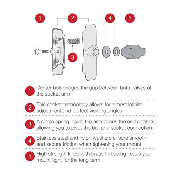 - Double ball and socket technology allows for near-infinite adjustability of your RAM® mounting system