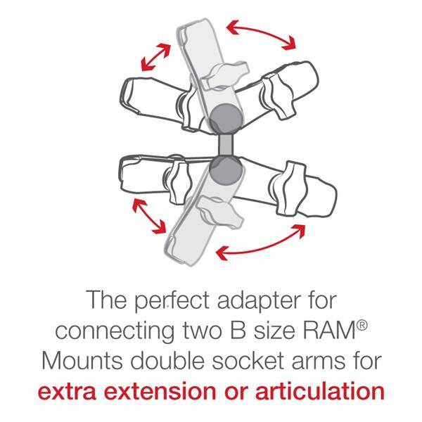 - The perfect adapter for connecting two B size RAM® Mounts double socket arms for extra extension or articulation
