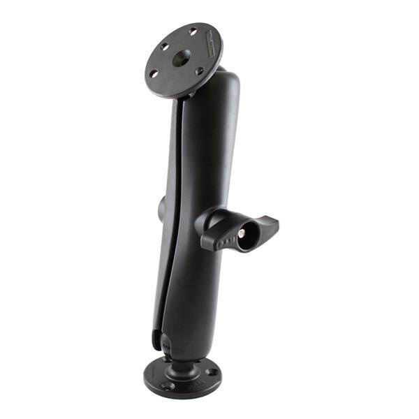 The RAM-D-101U consists of (2 qty) 3.68" diameter round bases and LONG length double socket arm. The 3.68" diameter round bases have pre-drilled holes, including two holes at 180 degrees and three holes at 120 degrees. Designed into the mount is a 2.25" diameter patented rubber ball and socket system with adjustment points at both socket ends of the arm. BrandSymbolRAM-D-101U-EProducer code793442310157Product Weight2359 gProduct DimensionsOverall Height: 15.5"Socket-to-Socket Length11.41"Hole PatternSee Drawing3-Hole 120 Degree (Large)Weight CapacityStandard Use: 2721.55 gramss|Heavy-Duty Use: 2267.96 gramssMaterialsMarine-grade aluminumPackaging TypePoly BagMounting TypeDrill DownBall & Socket SizeD Size 2.25" (Holds 2721.55 gramss)Socket Arm LengthLong ArmComponent partsRAM-D-201U-ERAM-D-202USocket To Socket Length11.41"Ball SizeD Size (2.25") - Recommended products