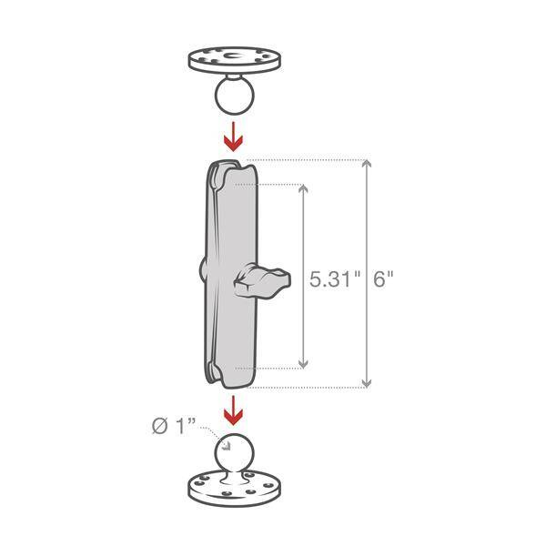 The RAM-B-201U-C consists of a long double socket arm that accommodates 1" B size ball bases, device holders, and adapters. With an overall length 6", this is the longest B size RAM double socket arm size and adds more reach to your favorite mounting solution. The easy to adjust knob allows for near-infinite adjustability for your connected device. BrandSymbolRAM-B-201U-CProducer code793442002670Product Weight249 g259 gProduct DimensionsOverall Length: 6"Socket-to-Socket Length5.31"Weight CapacityStandard Use: 907.18 gramss|Heavy-Duty Use: 453.59 gramsMaterialsMarine-grade aluminumPackaging TypePoly BagBall & Socket SizeB Size 1" (Holds 907.18 gramss)Socket Arm LengthLong ArmSocket To Socket Length5.31"Ball SizeB Size (1") - Recommended products