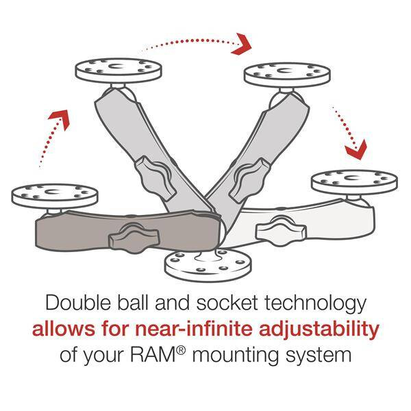 - Attaches to any B size RAM® ball component, including mounting bases and device holders; double ball and socket technology allows for near-infinite adjustability of your RAM® mounting system