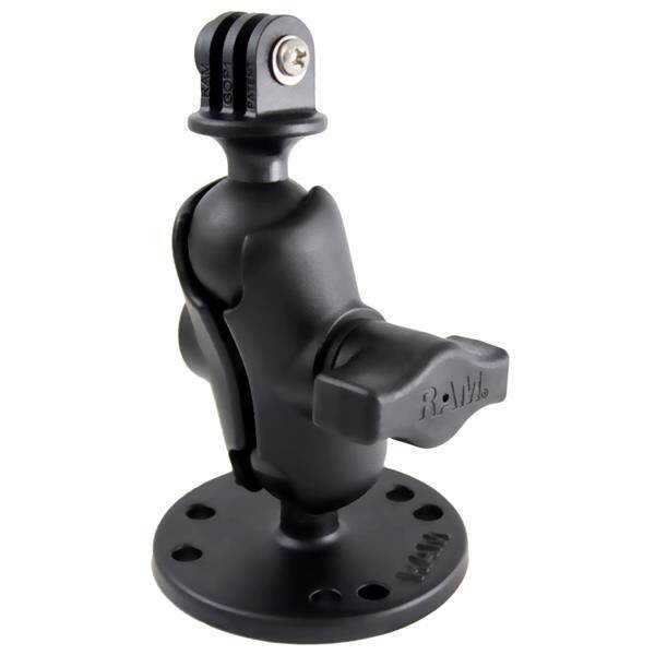 The RAM-B-138-A-GOP1U consists of a 2.5" diameter round base with the universal AMPS hole pattern, SHORT size double socket arm and 1" diameter ball with custom GoPro Hero adapter. The mount is designed with a RAM 1" diameter patented rubber ball and socket system that has adjustment points at both ends of the double socket arm; this allowing for almost infinite adjustment and perfect viewing angles. The RAM-B-138-A-GOP1U can be used as a drill-down or a temporary, removable mounting solution with the addition of the RAP-339U accessory. The GoPro Hero adapter attaches directly to the under-side of the camera, replacing the factory mounting bracket. BrandSymbolRAM-B-138-A-GOP1UProducer code793442936593Product Weight177 gHardware IncludedAssembly HardwareSocket-to-Socket Length1.75"Hole Pattern4-Hole AMPS: 1.181" x 1.496"|3-Hole 120-Degree: 1.812" DiameterAMPS 4-Hole3-Hole 120 Degree (Small)Plate Size2.5" DiameterWeight CapacityStandard Use: 907.18 gramss|Heavy-Duty Use: 453.59 gramsMaterialsMarine-grade aluminum|High strength compositePackaging TypePoly BagMounting TypeDrill DownBall & Socket SizeB Size 1" (Holds 907.18 gramss)Socket Arm LengthShort ArmDevice or Accessory TypeCameraComponent partsRAM-B-201U-ARAM-B-202URAP-B-202U-GOP1Socket To Socket Length1.75"Ball SizeB Size (1") - CompatibilityACTIVEON CX GoldAEDILYS 4K WIFI SportsAEE ACE S70 Black 16MP 2"AKASO EK7000 4K WIFI SportsDiscovery Kids Photo & Video Adventure CameraGoPro HeroGoPro SessionLightdow LD4000 1080P HDMuvi veho K-Series K-2 Pro 4KSJCAM SJ4000SJCAM SJ5000X Elite 4KVivitar HDVtin 4kVtin WiFiWiMiUS Q2 Black 1080P WifiXcel 1080CGarmin Virb