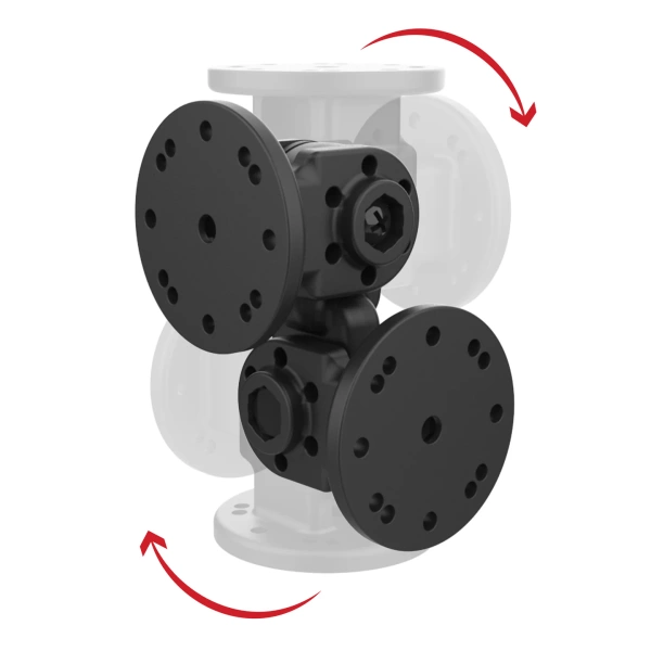 The RAM Dual 90-Degree Pivot Mount (RAP-101-PV4-2P-NKU) is a low-profile, drill-down mounting solution with two articulation hinges in opposing directions so users can easily pivot their device up to 180-degrees in each direction. Each end features 2-hole and 4-hole AMPS patterns to easily install any RAM holder or GDS dock and secure the mount to any surface. This solution uses tooth-lock washers to allow users to pivot their device up to 270-degrees and utilizes a barrel nut instead of traditional adjustment knobs to provide tamper resistance, ideal for high-traffic environments. BrandSymbolRAP-101-PV4-2P-NKUProducer code793442025525Product DimensionsOverall Height: 5.16"Hole Pattern4-Hole AMPS: 1.181" x 1.496"|2-Hole AMPS: 1.912"Plate Size2.5" DiameterMaterialsHigh strength compositePackaging TypePoly BagProduct Weight195 g - Recommended products