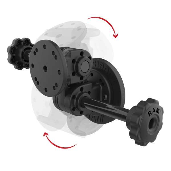 The RAM Dual Straight Pivot Magnetic Mount with Knob (RAP-101-PV4-2S-MAG88U) is a dual articulating, magnetic mounting solution. One end features both 2-hole and 4-hole AMPS patterns to easily install any RAM holder or GDS dock while the other end features the RAM Tough-Mag magnetic base. This solution uses tooth-lock washers and extended knobs at each joint to allow users to adjust their device up to 180-degrees on each joint to achieve the ideal viewing angle. The RAM Tough-Mag base features 10 industrial-strength N52 grade magnets that magnetize to any ferrous metal surface and rubber coating that protects the metal surface you're attaching to. BrandSymbolRAP-101-PV4-2S-MAG88UProducer code793442025471SeriesProduct DimensionsOverall Height: 5.14"|Overall Width with Knobs: 9.16"Hole Pattern4-Hole AMPS: 1.181" x 1.496"|2-Hole AMPS: 1.912"Plate SizeTop Plate: 2.5" Diameter|Magnetic Base: 3.46" DiameterMaterialsHigh strength compositeHigh strength composite|N52 Magnets (Qty 10)Packaging TypePoly BagComponent partsRAM-MAG88DUProduct Weight503 g - Recommended products