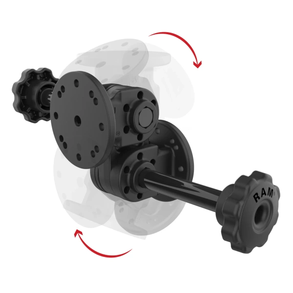 The RAM Dual Straight Pivot Mount with Knob (RAP-101-PV4-2SU) is a dual articulating, drill-down mounting solution. Each end features 2-hole and 4-hole AMPS patterns to easily install any RAM holder or GDS dock and secure the mount to any surface. This solution uses tooth-lock washers and extended knobs at each joint to allow users to adjust their device up to 180-degrees on each joint to achieve the ideal viewing angle. BrandSymbolRAP-101-PV4-2SUProducer code793442025464Product DimensionsOverall Height: 4.82"|Overall Width with Knobs: 9.16"Hole Pattern4-Hole AMPS: 1.181" x 1.496"|2-Hole AMPS: 1.912"Plate Size2.5" DiameterMaterialsHigh strength compositePackaging TypePoly BagProduct Weight322 g - Recommended products