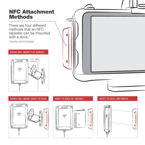- Includes NFC repeater extending to 30cm of reach and attaches to the back of select RAM® and GDS® tablet docks