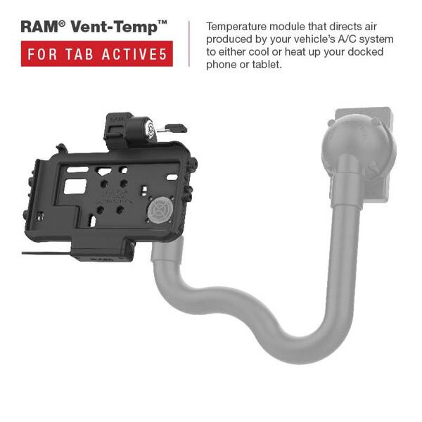 • Key-locking form-fit powered dock designed specifically for the Samsung Galaxy Tab Active5 & Tab Active3 wrapped in a Samsung OEM protective case or RAM® Skin™