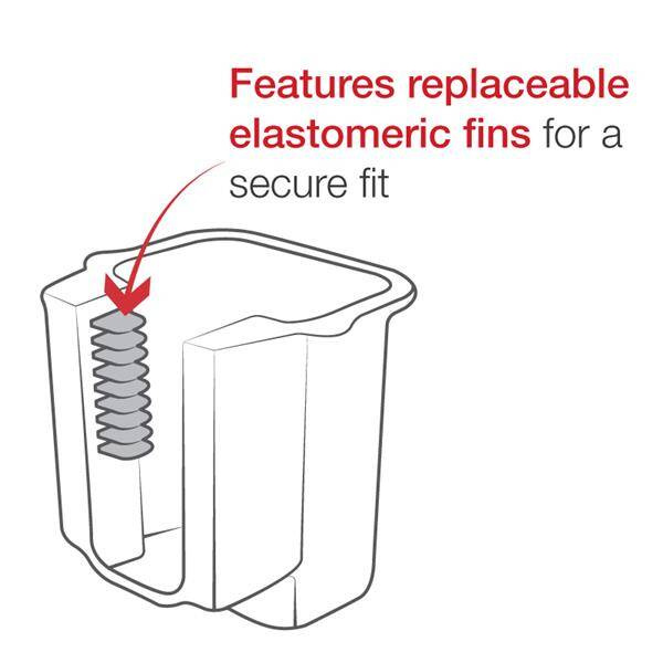 - Universal scanner gun holder features replaceable elastomeric fins for a secure fit