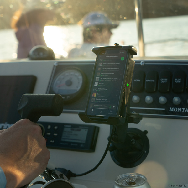 - Waterproof Qi compatible wireless phone charging cradle features spring-loaded RAM® Quick-Grip™ design and 15W maximum output