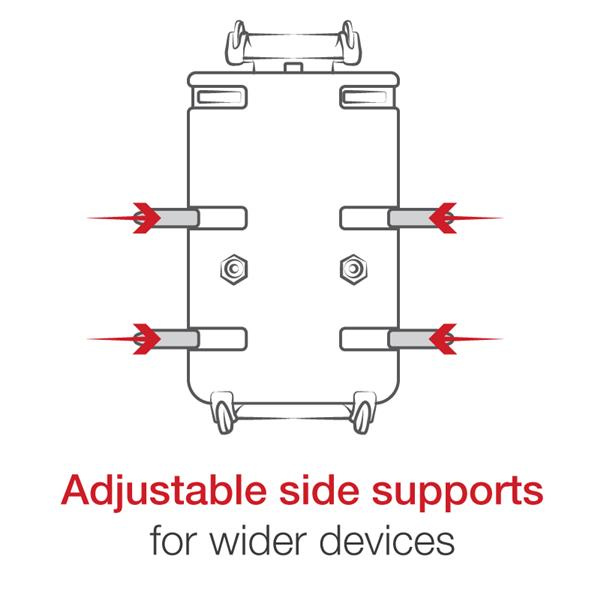 - Spring-loaded holder features adjustable side supports that provide a secure fit for a variety of large phones and other devices; easily insert and remove your phone with one hand