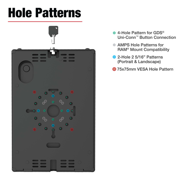 - Secure to RAM® ball mounts with VESA and AMPS pattern; or flush mount