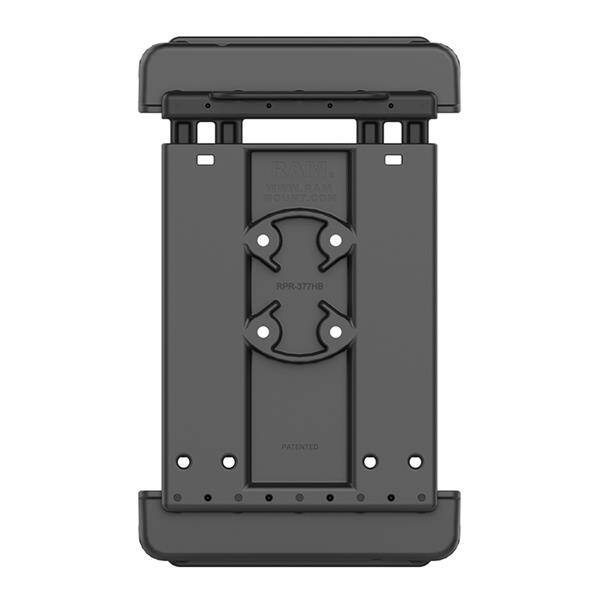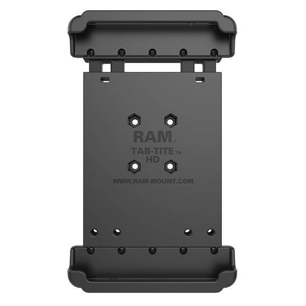 The RAM Tab-Tite spring loaded, quick release cradle offers a secure fit with easy access to the mounted tablet. The interchangeable cup ends are designed specifically for the Samsung Galaxy Tab Tab E 8.0, Tab A 8.0 and Tab A 8.4. The spring loaded design makes it easy to insert and remove your tablet, along with keeping it secure in mobile applications. The custom end cups are designed to optimize the functionality of your tablet, enabling access to all ports and tablet functions. The included back plate is interchangeable with various size support cups, making it compatible with numerous tablet models. New detachable support cups are the only components needed for purchase, attach to the back plate for support of your new tablet. Included is a set of four nuts and bolts to connect the cradle to any RAM components or mounts that contain the universal AMPs hole pattern. For off-road environments and extreme use, we recommended the use of a tether to assist in retaining your device. The Tab-Tite cradle is compatible with any tablet that will fit the dimensions listed below. It is important to verify the dimensions of your tablet when determining the overall size. Cradle Dimensions: Length: 8.08" to 10.69" Width: 3.77" to 4.96" Depth: 0.13" to 0.36" BrandSymbolRAM-HOL-TAB24UProducer code793442947650SeriesProduct Weight227 g236 gHardware IncludedAssembly Hardware|(4) #8-32 x 5/8" Machine Screws|(4) #8-32 x 1/2" Machine Screws|(4) #8-32 Nylock NutsHolder DimensionsHeight Range: 8.08" - 10.69"|Width Range: 3.77" - 4.96"|Depth Range: .13" - .36"Hole Pattern4-Hole AMPS: 1.181" x 1.496"AMPS 4-HoleMaterialsHigh strength compositePackaging TypePoly BagDevice or Accessory TypeTabletComponent partsRAM-HOL-ACURAM-HOL-TAB24-CUPSU - CompatibilityASUS MeMO Pad 8ASUS VivoTab 8ASUS ZenPad 8.0ASUS ZenPad S 8.0Dell Venue 8 7840Huawei MediaPad M3Huawei MediaPad M3 LiteHuawei MediaPad T3 8LG G Pad F 8.0 (2nd Gen)LG G Pad II 8.0LG G Pad X 8.0Lenovo Tab 2 A8Lenovo Tab 4 8Lenovo Tab 4 8 PlusLenovo Tab A8-50Lenovo Tab S8Lenovo Tab3 8Samsung Galaxy Tab 3 8.0Samsung Galaxy Tab 4 8.0Samsung Galaxy Tab A 8.0 (2017)Samsung Galaxy Tab A 8.0 (2018)Samsung Galaxy Tab A 8.0 (2019)Samsung Galaxy Tab A 8.4Samsung Galaxy Tab E 8.0Samsung Galaxy Tab S 8.4Samsung Galaxy Tab A7 Lite 8.7Samsung Galaxy Tab A9