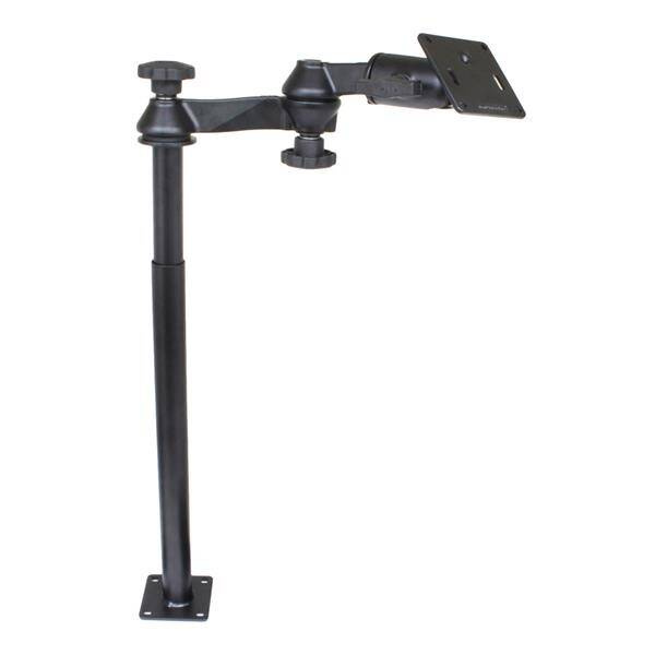 The RAM-VP-SW1-1218-2461 consists of a 18" lower female Tele-Pole, 12" upper male Tele-Pole, double swing arm and 3.625" square base that contains the VESA hole pattern. The lower female Tele-Pole will attach to all RAM vehicles bases that do not contain a welded female Tele-Pole. The height of the Tele-Poles, combinded, can easily be adjusted by turning the knob at the top of the post. Once the knob has been tightened, the Tele-Pole becomes a rigid support for connecting devices or cradles. The double swing arm allows you to twist and tilt the viewing angle of your connected electronic device, when mounted on your RAM Vehicle Mount. The rotating swivel arm gives you even more viewing positions for your mounted electronic device while holding everything firmly in place. The length of the double swing arm is 12". The 3.625" square base includes a 75mm X 75mm VESA hole pattern with 1.5" rubber ball positioned 0.88" from the center of one edge. BrandSymbolRAM-VP-SW1-1218-2461Producer code793442935336SeriesProduct Weight3425 g4082 gHardware IncludedAssembly Hardware|(4) 5/16"-18 x 1" Carriage Bolts|(4) 5/16"-18 Hex Nuts|(4) 5/16" Flat Washers|(4) 5/16" Split Lock Washers|(4) Rubber CapsProduct DimensionsMinimum Height: 22.3"|Maximum Height: 34.3"Hole PatternTele-Pole: 2.625" x 2.625"|VESA Plate: 75 x 75mm VESA75 x 75 VESAPlate SizeVESA Plate: 3.625" x 3.625"|Lower Pole: 3.5" x 3.5"MaterialsPowder coated steel|Marine-grade aluminumPackaging TypeBoxMounting TypeDrill DownBall & Socket SizeC Size 1.5" (Holds 1814.37 gramss)Device or Accessory TypeMonitorComponent partsRAM-2461URAM-VB-110-1NBURAM-VP-TBF18URAM-VP-TTM12UBall SizeC Size (1.5") - Recommended products