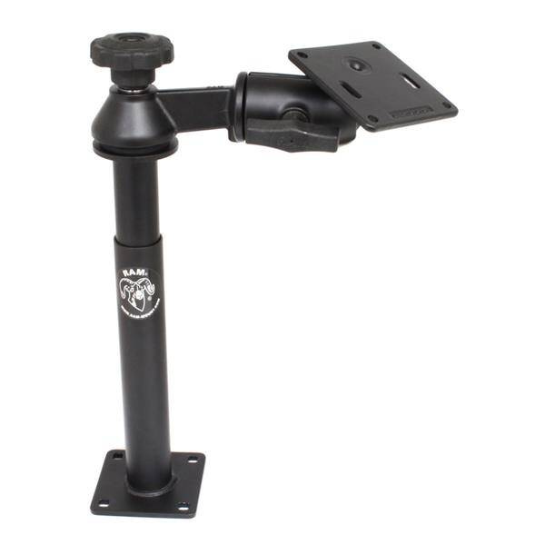 The RAM-VP-SW2-89-2461 consists of a 9" lower female Tele-Pole, 8" upper male Tele-Pole, single swing arm and 3.625" square base that contains the VESA hole pattern. The lower female Tele-Pole will attach to all RAM vehicles bases that do not contain a welded female Tele-Pole. The height of the Tele-Poles, combined, can easily be adjusted by turning the knob at the top of the post. Once the knob has been tightened, the Tele-Pole becomes a rigid support for connecting devices or cradles. The 3.625" square base includes a 75mm X 75mm VESA hole pattern with 1.5" rubber ball positioned 0.88" from the center of one edge. BrandSymbolRAM-VP-SW2-89-2461Producer code793442924651SeriesProduct Weight2948 gHardware IncludedAssembly Hardware|(4) 5/16"-18 x 1" Carriage Bolts|(4) 5/16"-18 Hex Nuts|(4) 5/16" Flat Washers|(4) 5/16" Split Lock Washers|(4) Rubber CapsProduct DimensionsMinimum Height: 16.3"|Maximum Height: 21.3"Hole PatternTele-Pole: 2.625" x 2.625"|VESA Plate: See Drawing75 x 75 VESAMaterialsPowder coated steel|Marine-grade aluminumPackaging TypeBoxMounting TypeDrill DownBall & Socket SizeC Size 1.5" (Holds 1814.37 gramss)Device or Accessory TypeMonitorComponent partsRAM-2461URAM-VB-110-5NBURAM-VP-TBF9URAM-VP-TTM8UBall SizeC Size (1.5") - Recommended products