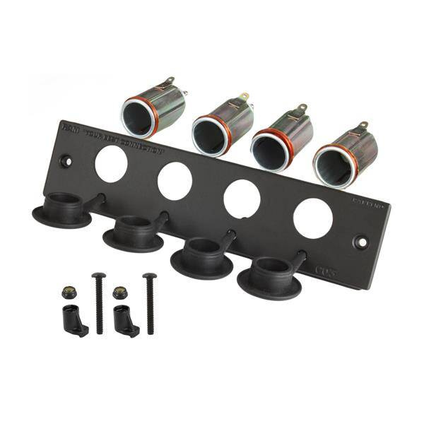 Crafted from diecast aluminum with a black coat finish, the RAM 12 Volt Lighter Receptacle Faceplate is a must have accessory for any Tough-Box Console System. The faceplate is compact and lightweight, taking up minimal space in your console, yet offering the utmost in versatility. The rubber caps, along with the innovative tongue and groove feature keeps the inside of the console free of contaminates as well as provides a rock solid system once installed into the RAM Tough-Box Console. Also, the faceplate makes use of the patented RAM Twist-Lock feature which can be loosened to quickly and easily service electronics or swap out old devices. This product will ensure you are never without the power you need to get the job done. BrandSymbolRAM-FP2-CIG4Producer code793442925603SeriesProduct Weight399 gHardware Included(4) Cigarette Sockets|(4) Rubber Plugs|(2) #6-32 x 1" Machine Screws|(2) #6-32 Nylock Nuts|(2) Composite Twist Lock LugsProduct DimensionsOverall Length: 2" (space taken in Console Box)MaterialsMarine-grade aluminumPackaging TypePoly BagComponent partsRAM-VC-CIG1FU - Recommended products