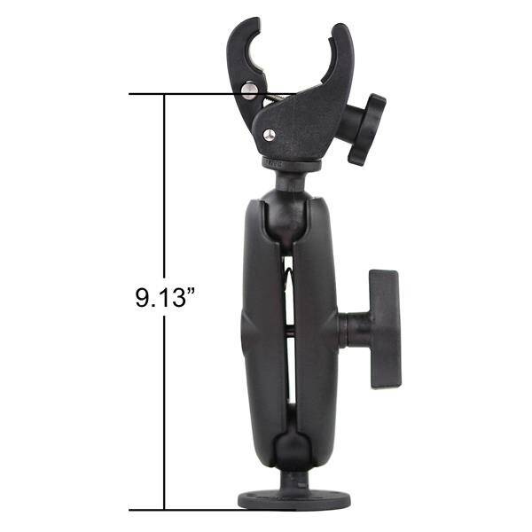 Ideal for stabilizing trolling motors, the RAP-400-202U consists of the small RAM Tough-Claw base, C size medium length double socket arm, and round base adapter. The RAM Tough-Claw is the perfect mounting base for quick and easy tool-less installation and removal on round, square, odd shaped rails, and bars. The RAM Tough-Claw can be clamped on rails from 0.625" - 1.14" outer diameter. The round base adapter contains the industry standard universal AMPS hole pattern. This mount is designed with RAM C size 1.5" diameter patented ball and socket system that has adjustment points at both ends of the double socket arm, allowing for almost infinite adjustment and perfect viewing angles. BrandSymbolRAP-400-202UProducer code793442946882SeriesProduct Weight603 g599 gClamp Range.625" - 1.14" diameterSocket-to-Socket Length4.66"Hole Pattern4-Hole AMPS: 1.181" x 1.496"|3-Hole 120-Degree: 1.812" DiameterAMPS 4-Hole3-Hole 120 Degree (Small)Plate Size2.5" DiameterWeight CapacityStandard Use: 1814.37 gramss|Heavy-Duty Use: 1360.78 gramssMaterialsMarine-grade aluminum|High strength compositePackaging TypePoly BagMounting TypeHandlebar/RailFlat Edge ClampBall & Socket SizeC Size 1.5" (Holds 1814.37 gramss)Socket Arm LengthMedium ArmComponent partsRAM-201URAM-202URAP-400USocket To Socket Length4.66"Ball SizeC Size (1.5") - Recommended products