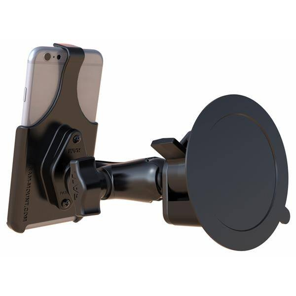 The RAM-B-166-AP18U consists of a 3.3" diameter suction cup twist lock base, double socket arm and high strength composite cradle. The suction cup, twist lock base is designed to have a strong hold on glass and non-porous plastic surfaces. Designed into the mount is a 1" diameter patented rubber ball and socket system with adjustment points at both ends of the socket arm; this with a twist of the arm knob, allows you to move the mount to your optimum viewing position. BrandSymbolRAM-B-166-AP18UProducer code793442947001SeriesProduct Weight354 gHardware IncludedAssembly HardwareSuction Size3.3" DiameterSocket-to-Socket Length3"Weight CapacityStandard Use: 907.18 gramss|Heavy-Duty Use: 453.59 gramsMaterialsMarine-grade aluminum|High strength compositePackaging TypePoly BagMounting TypeSuction CupBall & Socket SizeB Size 1" (Holds 907.18 gramss)Socket Arm LengthMedium ArmDevice or Accessory TypePhoneVehicle TypeCar & TruckComponent partsRAM-B-166URAM-HOL-AP18USocket To Socket Length3"Ball SizeB Size (1") - CompatibilityApple iPhone 6Apple iPhone 6sApple iPhone 7