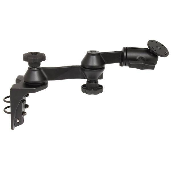 UNPKD RAM DBL SWING ARM TELEPOLE BASE BrandSymbolRAM-VB-110V-1UProducer code793442925801Product Weight1043 g1542 gMounting TypeHandlebar/RailDrill DownBall & Socket SizeC Size 1.5" (Holds 1814.37 gramss)Hole PatternAMPS 4-Hole3-Hole 120 Degree (Small)4-Hole AMPS: 1.181" x 1.496"|3-Hole 120-Degree: 1.812" DiameterComponent partsRAM-109V-BURAM-VB-110-1UHardware IncludedAssembly Hardware|(2) 1/4"-20 U-Bolts for 1.25" - 1.5" Rails|(4) 1/4"-20 Nylock Nuts|(4) #13 Flat WashersClamp Range1.25" - 1.5" diameterPlate Size2.5" DiameterBall SizeC Size (1.5")Weight CapacityStandard Use: 1814.37 gramss|Heavy-Duty Use: 1360.78 gramssMaterialsMarine-grade aluminumPackaging TypePoly Bag - Recommended products