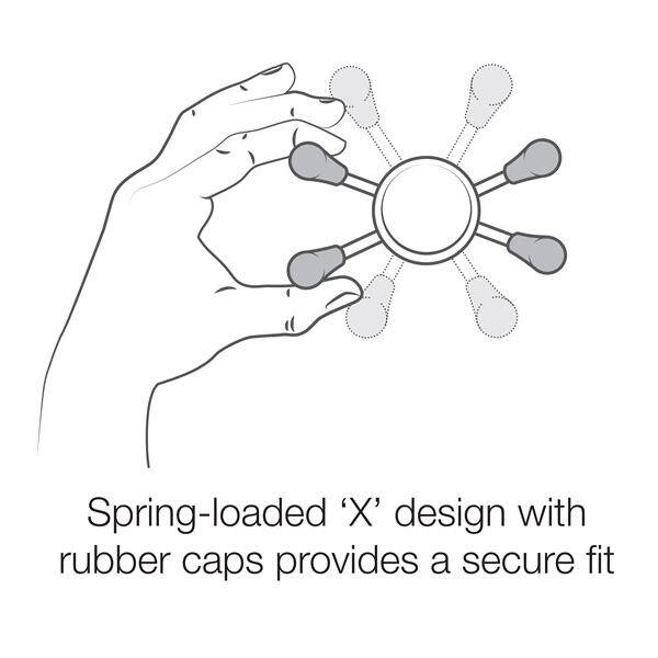 - Spring-loaded 'X' design with rubber caps sports great holding power without hiding your phone; includes optional device tether for peace of mind during rugged use