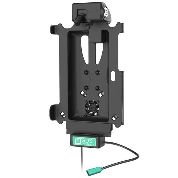 - Sprężynowa stacja dokująca do pojazdu z blokadą na kluczyk, wyposażona w technologię GDS® Technology™ do przesyłania danych i ładowania za pomocą złącza USB typu C.