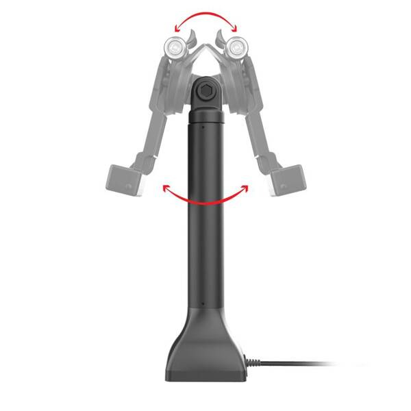 - Stacja dokująca obraca się o 180 stopni i umożliwia przechylanie podłączonych urządzeń o 180 stopni
