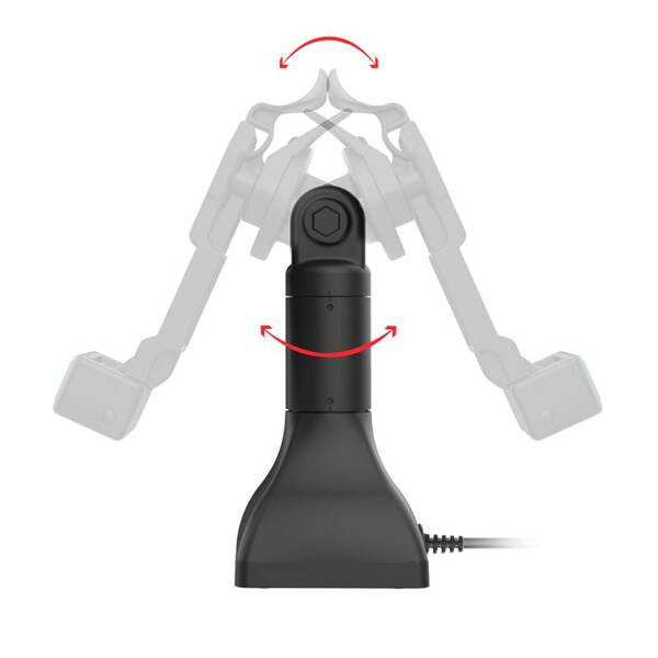 - Stacja dokująca obraca się o 180 stopni i umożliwia przechylanie podłączonych urządzeń o 180 stopni