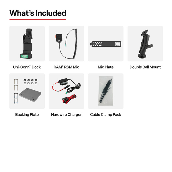 Zestaw GDS Uni-Conn PTT Remote Speaker Mic Bundle for ESChat & Zello (RAM-GDS-U1-RSM-A04) zapewnia wszystko, czego potrzebujesz, aby zapewnić niezawodną funkcję Push-to-Talk over Cellular (PoC) we flocie. Ten pakiet nie zawiera IntelliSkin, idealny dla organizacji już korzystających z rękawów na urządzenia IntelliSkin lub wdrażających flotę urządzeń mieszanych w ramach ekosystemu GDS. Ten zestaw zawiera uniwersalną stację dokującą Uni-Conn, podstawę do wiercenia z płytą nośną, wspornik mikrofonu, klips mikrofonu i wytrzymały zdalny mikrofon głośnikowy USB-C (RSM). Kompatybilny z ESChat i Zello, zapewnia wyraźną, natychmiastową komunikację dla flot, służb ratowniczych, zespołów logistycznych i mobilnych pracowników. MarkaSymbolRAM-GDS-U1-RSM-A04Kod producenta793442031809SeriaWaga produktu2182 gSprzęt w zestawie(1) Zdalny mikrofon głośnikowy (1) Stacja dokująca Uni-Conn (1) Uchwyt mikrofonu (1) Odbiornik klipsa mikrofonu (1) Podwójny uchwyt kulowy z płytką nośną (1) Ładowarka przewodowa (2) Zestawy zacisków kablowychDługość od gniazda do gniazda4.66"Wzór otworu4-otworowy AMPS: 1,181" x 1,496"|3-otworowy 120-stopniowy: 1,812" ŚrednicaRozmiar kulkiRozmiar C (1,5")MateriałyStal|Aluminium klasy morskiej|Kompozyt o wysokiej wytrzymałościTyp opakowaniaBoxSpecyfikacja zasilaniaZdalny mikrofon z głośnikiem: Napięcie robocze: 1,2 VDC - 5 VDC Pobór prądu: 100UA - 500UA Impedancja wyjściowa przy 1KHZ maks. 2,2K Ohm Stosunek sygnału do szumu: 1KHZ 60+ DB Maks. wejściowy SPL 110DB Stopień ochrony przed wilgocią IP67Napięcie wyjściowe5V - 12V @ 3AMoc wyjściowa15WZłącze wejścioweUSB typu C|USB typu C dla 1 urządzenia peryferyjnegoDługość kabla wejściowego215 mmDługość kabla wyjściowego215 mmWyjście peryferyjne500mAhCzęści składoweRAM-101-MIC2URAM-138-225B2URAM-GDS-CAB-CLAMP1URAM-GDS-CHARGE-V3C-3URAM-GDS-DOCK-U1CP-CURAM-RSM-A04RAM-VC-MC - Produkty polecane