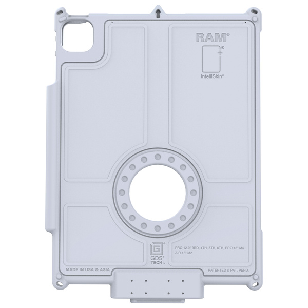 IntelliSkin Next Gen for iPad Pro 13 (M4), Air 13 & Pro 12.9 - Gray (RAM-GDS-SKIN-AP47-NG-GRY) to ochronne etui, które łączy w sobie twardą plastikową powłokę z miękką, absorbującą wstrząsy gumą. Posiada zintegrowane złącze GDS uformowane bezpośrednio w skórze, co zapobiega uszkodzeniom portu ładowania urządzenia podczas wielokrotnego dokowania. Płaskie, wzmocnione styki na złączu zbierają mniej brudu i są łatwiejsze do czyszczenia. Zintegrowane złącze ma również port USB typu C, który omija podkładki pogo, aby ładować urządzenie, gdy nie masz dostępnej stacji dokującej GDS. W zestawie znajduje się zaślepka ochronna na port USB-C, która zapobiega gromadzeniu się zanieczyszczeń podczas pracy w terenie. Etui zapewnia wojskową ochronę przed upadkami i jest kompatybilne z różnymi stacjami dokującymi i akcesoriami GDS. Jasnoszary kolor nie tylko dobrze komponuje się z profesjonalnymi i przemysłowymi ustawieniami, ale także dodaje czystej, nowoczesnej estetyki. Zawsze chroniony. Zawsze połączony. MarkaSymbolRAM-GDS-SKIN-AP47-NG-GRYKod producenta793442030383Waga produktu467 gMateriałyPoliwęglan i elastomery termoplastyczneTyp opakowaniaPudełko detalicznePrędkość transferuDo USB 3.1 przy 5 Gb/s (przez styki w kształcie litery D)*|Do USB 2.0 przy 480 Mb/s (przez zewnętrzny port USB-C)PortyZewnętrzny port USB-C 2.0 - KompatybilnośćApple iPad Pro 12.9 3. - 6. gen.Apple iPad Air 13 (M2)Apple iPad Air 13 (M3)Apple iPad Pro 13 (M4)