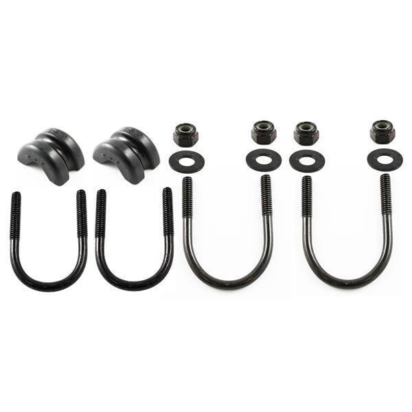 (2) Śruby U 1/4"-20 do szyn 1,25" - 1,5"|(2) Śruby U 1/4"-20 do szyn .5" - 1,25"|(4) Podkładki płaskie 1/4"|(4) Nakrętki Nylock 1/4"-20|(2) Podkładki dystansowe pod śruby U