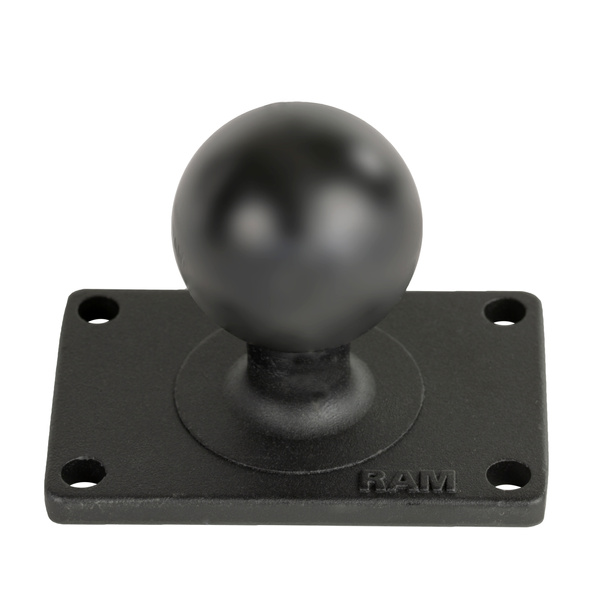 RAM-202U-23 składa się z gumowej głowicy o średnicy 1,5 cala połączonej z prostokątną podstawa z 4 otworami o wymiarach 1,5 cala x 2,5 cala od środka do środka.