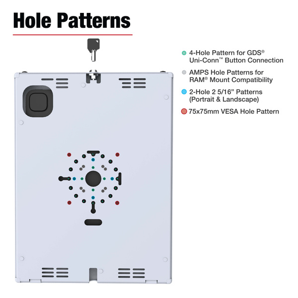 RAM Safe-Case for iPad Pro 13 (M4), Air 13 (M2 & M3), & Pro 12.9 Gray (RAM-TE-AP47-GRY) to wytrzymała, modułowa obudowa zaprojektowana dla środowisk o wysokim poziomie bezpieczeństwa. Zbudowany z wytrzymałej dwuczęściowej stali, ten zamykany na klucz futerał na tablet chroni przed kradzieżą, manipulacją i trudnymi warunkami środowiskowymi, idealny do wymagających zastosowań terenowych lub przemysłowych. Etui Safe-Case, dopasowane do 13-calowego iPada, posiada precyzyjne wycięcia zapewniające pełny dostęp do przycisku blokady urządzenia, portu USB-C i tylnej kamery. Otwory wentylacyjne i otwory na głośniki zapewniają funkcjonalność urządzenia bez uszczerbku dla ochrony. Gładkie szare wykończenie nie tylko dobrze komponuje się z profesjonalnymi i przemysłowymi ustawieniami, ale także dodaje czystej, nowoczesnej estetyki. Obudowa oferuje wszechstronne opcje montażu ze zintegrowanymi wzorami otworów do montażu podtynkowego, kompatybilność z podwójnymi uchwytami kulowymi RAM lub stojakami VESA 75x75mm. W celu zwiększenia funkcjonalności dokowania, Safe-Case obsługuje instalację przycisku GDS Uni-Conn, umożliwiając ładowanie tylnego pinu pogo po sparowaniu z dowolną kompatybilną stacją dokującą GDS (szukaj ikony ośmiokąta na listach produktów). MarkaSymbolRAM-TE-AP47-GRYKod producenta793442028472Sprzęt w zestawieSprzęt montażowy|(4) Śruby maszynowe #8-32 x 1/2"|(4) Nakrętki zabezpieczające #8-32|(4) Śruby maszynowe #10-24 x 1/2"|(4) Śruby maszynowe #10-24 x 5/8"|(4) Nakrętki zabezpieczające #10-24|(2) Śruby maszynowe #6-32 x 3/4"|(2) Podkładki zabezpieczające #6|Wymiary produktuWysokość całkowita: 9,7" Szerokość całkowita: 6,62" Grubość całkowita: .79"Typ opakowaniaBox - KompatybilnośćApple iPad Pro 12.9 3. - 6. gen.Apple iPad Air 13 (M2)Apple iPad Air 13 (M3)Apple iPad Pro 13 (M4)