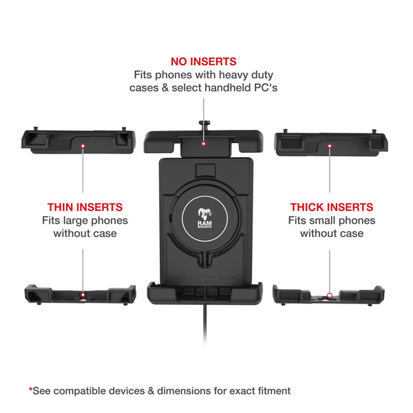 RAM Quick-Grip Pro XL Suction Cup Mount z bezprzewodową ładowarką Qi2 15W (RAM-B-166-PD7-W2MU) to kolejna ewolucja serii RAM Quick-Grip, przeprojektowana tak, aby była najbardziej wytrzymałym uniwersalnym uchwytem na telefon, który pasuje do szerokiej gamy telefonów i urządzeń przenośnych. Ten uchwyt na telefon jest wyposażony w bezprzewodową ładowarkę RAM Qi2 i posiada zintegrowane wgłębienie, aby zabezpieczyć ją na miejscu. Ten uchwyt na telefon jest wyposażony w antypoślizgową osłonę zapewniającą równe dopasowanie, gdy krążek do ładowania bezprzewodowego nie jest zainstalowany. RAM Quick-Grip Pro XL ma sprężynową konstrukcję, która umożliwia łatwe wkładanie i wyjmowanie urządzenia jedną ręką. Duże i małe podkładki są dołączone, aby zapewnić dokładne i bezpieczne dopasowanie do dużych i małych telefonów bez etui. Zestaw zawiera podstawę z przyssawką RAM Twist-Lock o średnicy 3,3 cala, którą można łatwo zainstalować na dowolnej nieporowatej powierzchni. RAM zaleca zainstalowanie dołączonego paska na urządzenie, gdy uchwyt jest używany w pojeździe z otwartym kokpitem. Ważne jest, aby zweryfikować wymiary urządzenia przenośnego z jego etui, pokrowcem lub skórką przy określaniu całkowitego rozmiaru. MarkaSymbolRAM-B-166-PD7-W2MUKod producenta793442026768NowośćTakSprzęt w zestawieSprzęt montażowyWymiary uchwytuZakres wysokości: 5,375" - 7"|Zakres szerokości: 2,75" - 3,5"|Maks. głębokość: .75"Rozmiar ssaniaŚrednica 3,3"Długość od gniazda do gniazda3"Rozmiar kulkiRozmiar B (1")UdźwigStandardowe użytkowanie: 907,18 gramów|Ciężkie użytkowanie: 453,59 gramówMateriałyAluminium klasy morskiej|Wysokowytrzymały kompozytTyp opakowaniaWorek foliowySpecyfikacja zasilaniaCzęstotliwość pracy: 360KHZ|Zużycie energii w trybie czuwania ~ 0.008A / 8mA @5VDC|80% lub wyższa wydajność bezprzewodowego transferu energii|Obsługuje zasilanie USB 2.0 BC1.2 (5V)|Obsługuje Qualcomm QC 2.0, QC 2.0, USB PD 2.0Napięcie wejścioweUSB 5V @ 3A|QC2.0 9V @ 2.22A|USB PD 2.0 5-15V @ 2AMoc wyjściowaBPP - 5W|EPP - 7.5W|MPP - 15WZłącze wyjścioweUSB Type-C męski z adapterem USB-ADługość kabla wyjściowego1 MiernikTemperatura pracy0°C do +40°CTemperatura przechowywania-20°C do +80°CRegulacyjneZabezpieczenie nadprądowe|Zabezpieczenie przed zwarciem|Zabezpieczenie przed nadmierną temperaturą|Zgodność z RoHS|Zgodność zEEECertyfikatyIP67|SAE J1455|Certyfikat FCC|Certyfikat CE|Certyfikat E-Mark|Certyfikat RCMCzęści składoweRAM-B-166URAM-GDS-CHARGE-W2MRAM-HOL-PD7U - KompatybilnośćApple iPhone 11Apple iPhone 11 ProApple iPhone 11 Pro MaxApple iPhone 12Apple iPhone 12 ProApple iPhone 12 Pro MaxApple iPhone 13Apple iPhone 13 ProApple iPhone 13 Pro MaxApple iPhone 14Apple iPhone 14 PlusApple iPhone 14 ProApple iPhone 14 Pro MaxApple iPhone 15Apple iPhone 15 PlusApple iPhone 15 ProApple iPhone 15 Pro MaxApple iPhone 16Apple iPhone 16 PlusApple iPhone 16 ProApple iPhone 16 Pro MaxApple iPhone 16eApple iPhone 17Apple iPhone 17 ProApple iPhone 17 Pro MaxApple iPhone AirApple iPhone 8Apple iPhone 8 PlusApple iPhone SEApple iPhone XApple iPhone XrApple iPhone XsApple iPhone Xs MaxBlackberry Evolve XGoogle Pixel 3Google Pixel 3 XLGoogle Pixel 4Google Pixel 4 XLGoogle Pixel 5Google Pixel 6Google Pixel 6 ProGoogle Pixel 7Google Pixel 7 ProGoogle Pixel 8Google Pixel 8 ProGoogle Pixel 9Google Pixel 9 ProGoogle Pixel 9 Pro XLGoogle Pixel 9aHuawei Mate 20 ProHuawei P30 ProLG G6LG G6 PlusLG G7 ThinQLG G8 ThinQLG G8S ThinQLG V30LG V35 ThinQLG V40 ThinQLG V50 ThinQNokia 8 SiroccoNokia 9 PureViewPanasonic Eluga X1 ProRazer Phone 2Samsung Galaxy Note 10Samsung Galaxy Note 10 PlusSamsung Galaxy Note 20Samsung Galaxy Note 20 UltraSamsung Galaxy Note 8Samsung Galaxy Note 9Samsung Galaxy S10Samsung Galaxy S10 5GSamsung Galaxy S10 PlusSamsung Galaxy S10eSamsung Galaxy S20 5GSamsung Galaxy S20 FE 5GSamsung Galaxy S20 Plus 5GSamsung Galaxy S20 Ultra 5GSamsung Galaxy S21 5GSamsung Galaxy S21 Plus 5GSamsung Galaxy S21 Ultra 5GSamsung Galaxy S22 5GSamsung Galaxy S22 Plus 5GSamsung Galaxy S22 Ultra 5GSamsung Galaxy S23Samsung Galaxy S23 PlusSamsung Galaxy S23 UltraSamsung Galaxy S24Samsung Galaxy S24 PlusSamsung Galaxy S24 UltraSamsung Galaxy S25Samsung Galaxy S25 PlusSamsung Galaxy S25 UltraSamsung Galaxy S8Samsung Galaxy S8 ActiveSamsung Galaxy S8 PlusSamsung Galaxy S9Samsung Galaxy S9 PlusSony Xperia XZ2Sony Xperia XZ3Xiaomi Mi 9Xiaomi Mi 9 ExplorerXiaomi Mi Mix 2SXiaomi Mi Mix 3